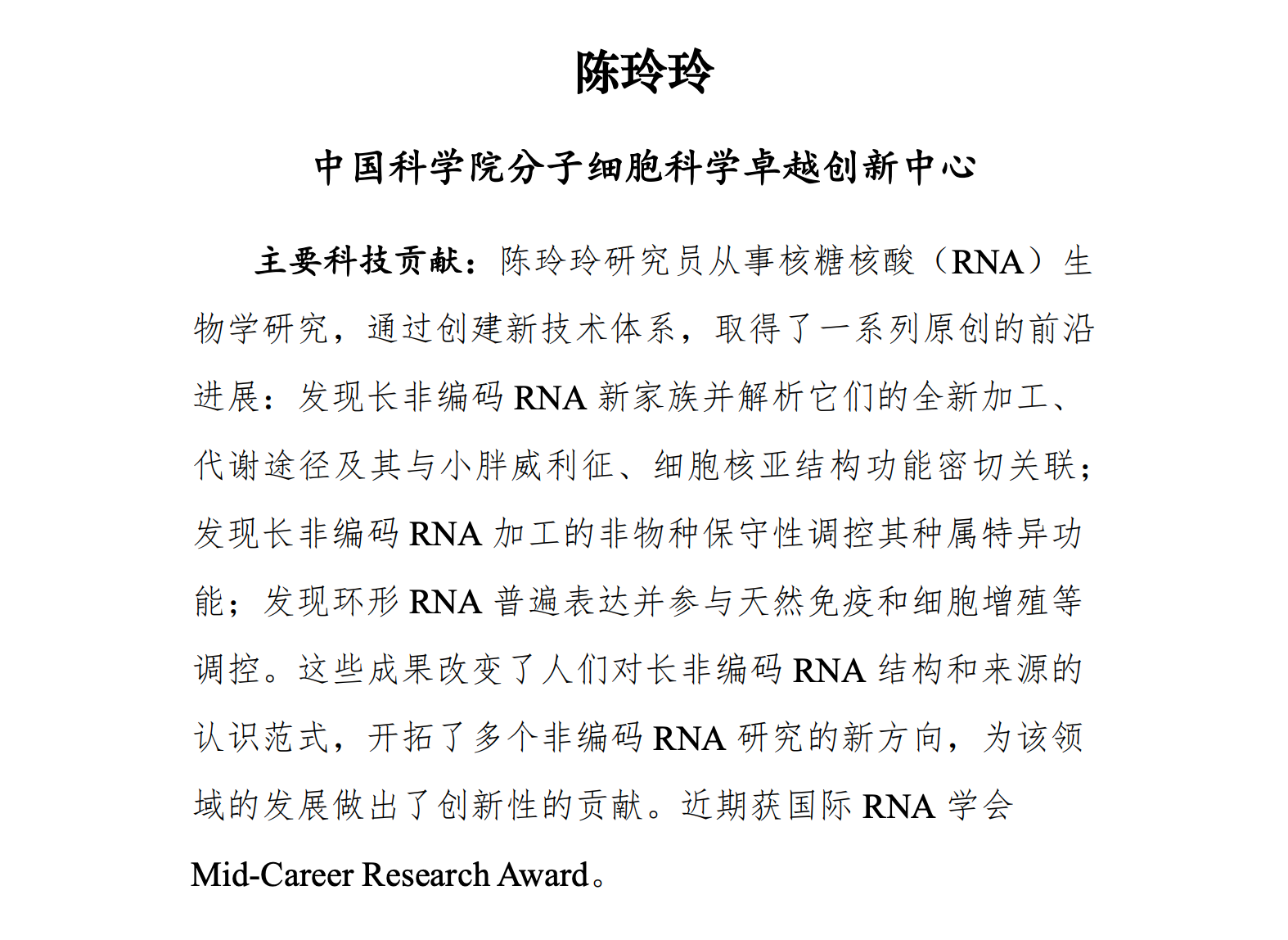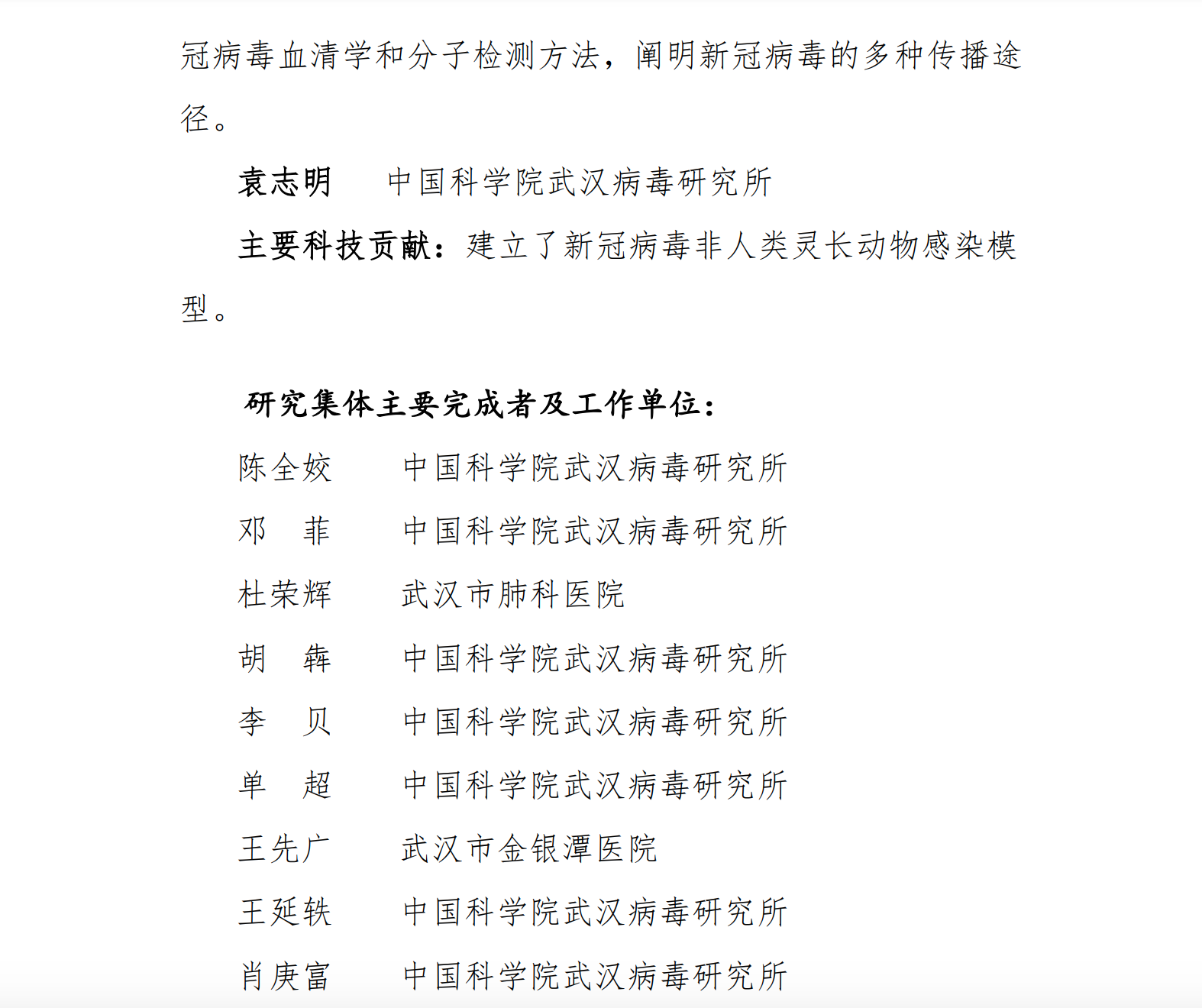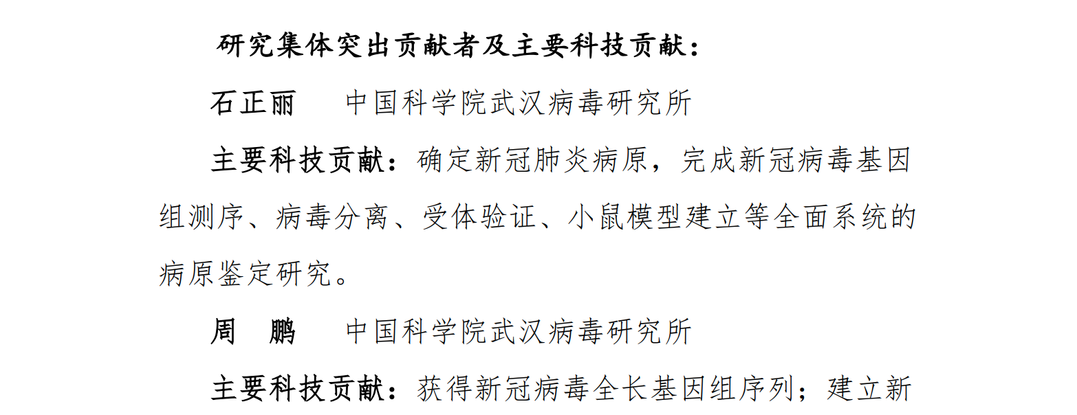 根据《中国科学院杰出科技成就奖条例》和《中国科学院杰出科技成就奖实施细则》的有关规定,经过物质科学与技术评审组、生命科学与生物技术评审组、资源环境科学与技术评审组、空间与信息科技评审组的初评,形成了2021年度中国科学院杰出科技成就奖进入总评的候选者建议名单(通用领域),现通过中国科学院院网站公布。中国科学院武汉病毒研究所入选。