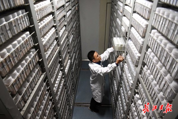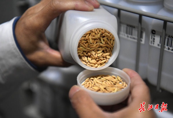 种质资源库低温环境下储存的水稻种子在这里可安全存储5—10年。