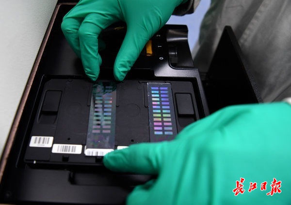 旁边,芯片扫描仪正在运行,通过水稻全基因组育种芯片的扫描筛选,为培育出高质量的种子保驾护航,叶荣建博士潜心在实验室做水稻分子检测的前期准备工作,显微镜下科研人员专心致志地进行水稻稻瘟病菌的分离实验和水稻叶片取样等工作,整座科研大楼实验室里科研人员都孜孜不倦地在各自岗位上寻找培养优良稻种的方法。