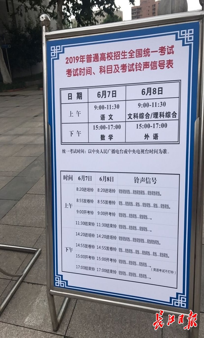 长江日报融媒体6月7日讯(记者刘嘉)今天,武汉市5.6万考生迎来高考。7日考试科目为语文和数学,考试时间分别为9:00~11:30、15:00~17:00,考生们千万不要看错时间,避免迟到。