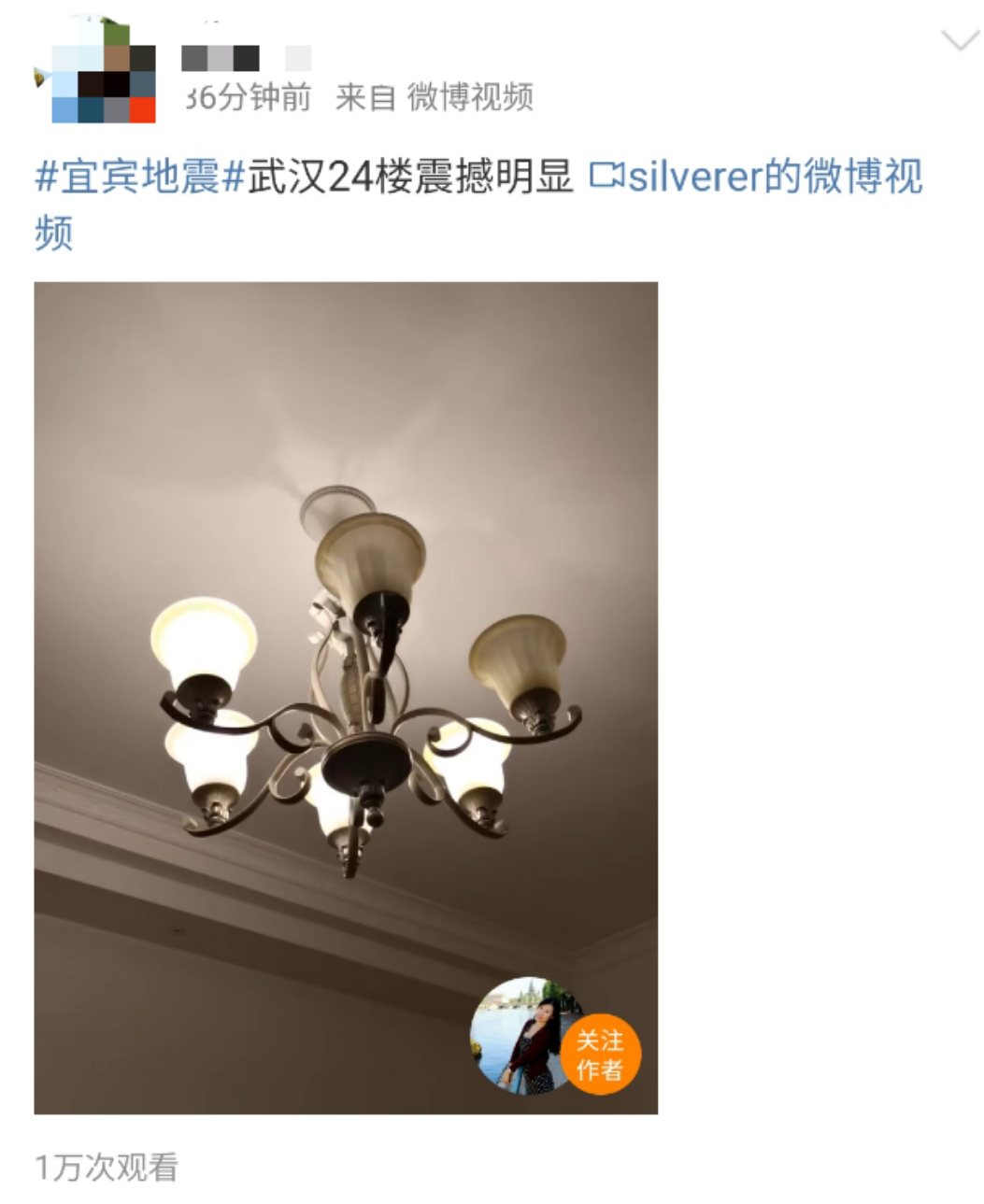 还有住在高层的网友拍下了吊灯摇晃的画面。