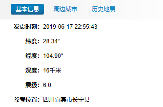 长江日报融媒体6月18日讯(记者汪伟颋)据中国地震台网消息,6月17日22时55分左右,四川省宜宾市长宁县发生6级地震,震源深度16千米。