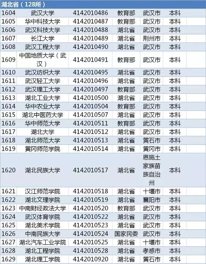 其中,湖北有普通高等学校128所,成人高等学校14所。