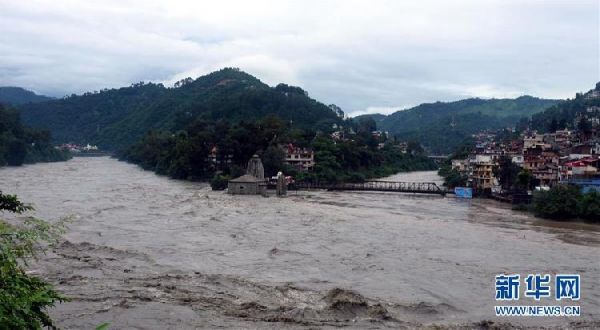 8月18日,在印度北部喜马偕尔邦,暴雨引发河水上涨。据印度媒体18日报道,印度北部喜马偕尔邦当天持续暴雨引发洪水、山体滑坡和泥石流等自然灾害,已造成至少18人死亡。