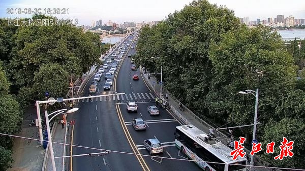 当日,大桥大队组织警力在汉阳桥头岗开展整治行动,重点打击电动自行车、摩托车交通违法行为。18时34分,男子付某骑电动自行车搭载着郭某,在机动车道上行驶,从武昌往汉阳方向驶上长江大桥。