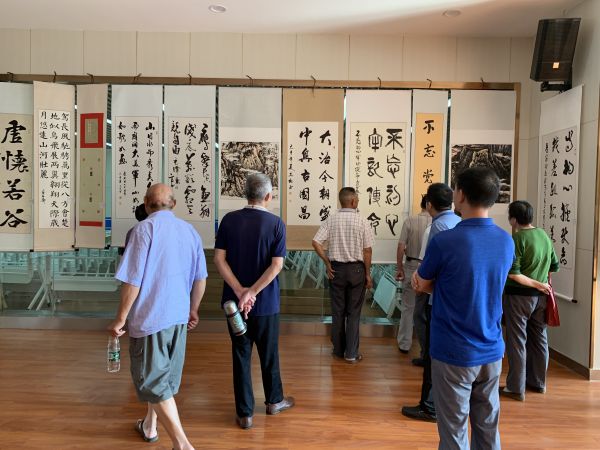 9月3日龙湖社区组织社区志愿者在军山街文体服务中心参观了军山街“与世界军运同行、庆祖国70华诞”书画摄影展。(曹悦)