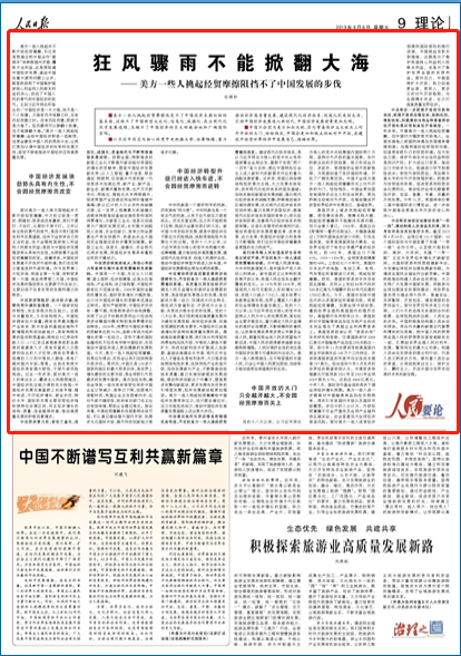美方一些人挑起并不断升级经贸摩擦,无论其是想通过把中国当作“替罪羊”来转移国内矛盾、攫取不当利益,还是想阻遏中国经济发展、逼迫中国在重大原则问题上让步,都显然误判了中国维护国家核心利益和人民根本利益的决心,低估了中国人民的骨气和中国经济的底气。正如习近平同志所指出的:“中国经济是一片大海,而不是一个小池塘。大海有风平浪静之时,也有风狂雨骤之时。没有风狂雨骤,那就不是大海了。狂风骤雨可以掀翻小池塘,但不能掀翻大海。”美方一些人挑起经贸摩擦,会给中国经济制造一些麻烦,但更会激发中国人民的昂扬斗志,让我们更加认清中国经济的优势和发展方向,坚定不移地推动中国经济迈向高质量发展。