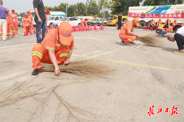 环卫工人进行“扎扫帚”比赛 (江汉城管 供图)