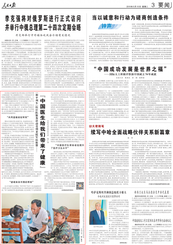 结束了一天的义诊,“和平列车”医疗队即将离开时,不少村民拉着医疗队员的手,久久不愿松开。村民伊穆说:“去年洪灾时很多人无家可归,还患上疾病,对生活几乎失去了希望。中国医疗队的及时帮助,让我们找回了希望。今天,中国医疗队再次到来,中国医生给我们带来了健康,感谢来自中国的帮助!”