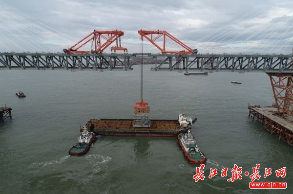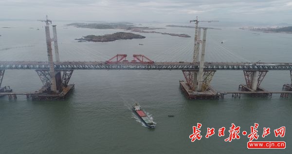 中铁大桥局平潭海峡公铁大桥项目经理张红心介绍,平潭海峡公铁两用大桥全长16.34公里,起于福建省长乐市松下镇,到达苏澳镇上平潭岛,共设有元洪航道、鼓屿门水道和大小练岛水道等三座钢桁结合梁斜拉航道桥。其中,元洪航道桥和大小练岛水道航道桥已分别于2019年6月5日和2018年12月28日合龙。