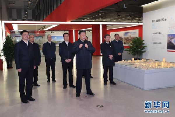 作为雄安新区第一个开工的重大交通建设项目,京雄城际铁路雄安站施工现场一派热火朝天。今年年初,习近平在京津冀三省市考察,来到河北雄安新区规划展示中心,通过大屏幕连线京雄城际铁路雄安站建设工地现场,向施工人员挥手致意,称赞他们是雄安新区建设的开路先锋,嘱咐他们科学施工、注意安全、确保质量,按期完成任务,并向他们及全国奋战在一线的劳动者们致以亲切问候和良好祝愿。
