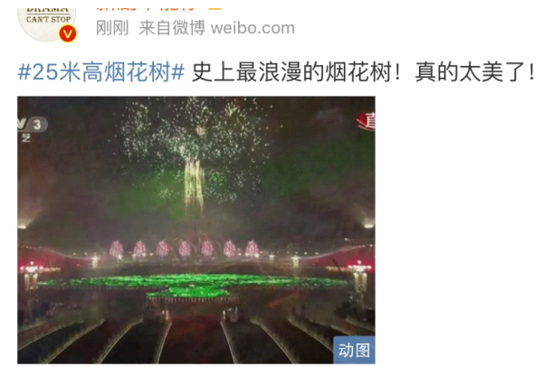 看了25米烟花树,网友们纷纷表示“爱了”:史上最浪漫烟花树!真的太美了!