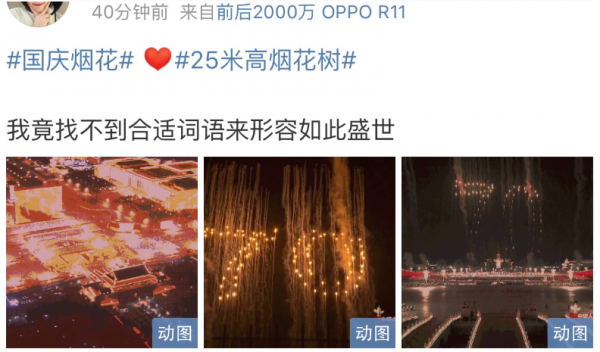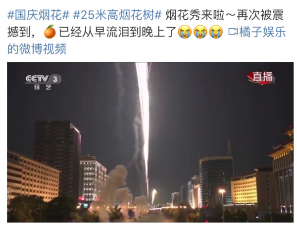 长江日报-长江网记者发现,白天的朋友圈被国庆阅兵刷屏,今晚的微博热搜被国庆烟花承包了!“国庆烟花”“25米烟花树”更是惊艳了网友:我竟找不到合适的词语来形容如此盛世!