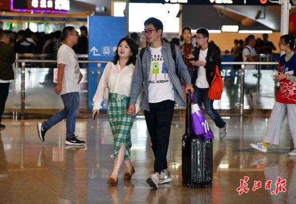 返程旅客面带微笑回到武汉。记者詹松 摄