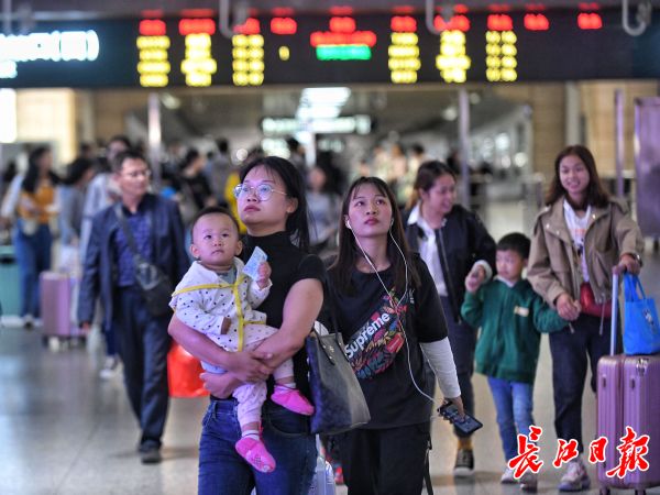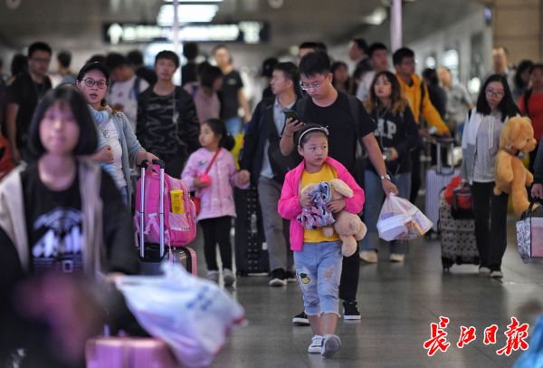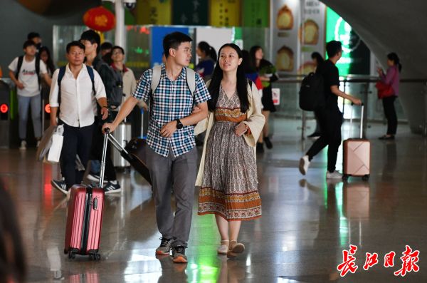 长江日报-长江网10月7日讯 10月7日,长江日报-长江网记者在武汉火车站、武昌火车站看到,众多返程旅客抵达火车站后,搭乘公交和地铁回家或返校。
