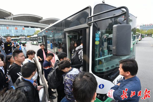 特别是公交643路和513路由于分别开往武科大城市学院和光谷方向,返校大学生众多,客流比平时增加3倍以上。为此公交六公司五分公司增加公交班次和跨线公交,发车时间由平时的8分钟一班,缩短到4分钟一班,保证旅客顺利返程。记者詹松 苗剑 摄影报道