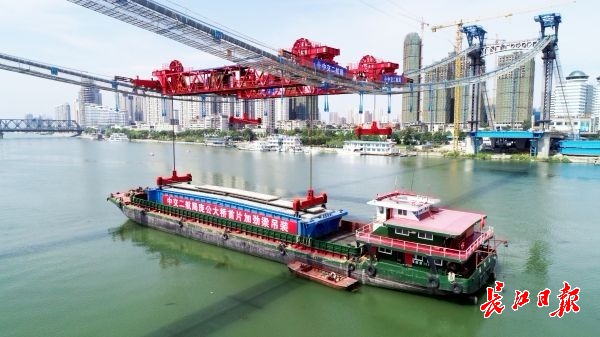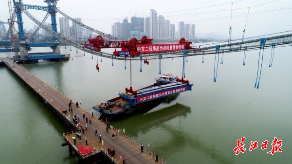 长江日报-长江网10月9日讯 10月9日上午,汉江之上,由在汉的“国家建桥主力军”中交二航局承建的襄阳庞公大桥主桥加劲梁顺利完成首片吊装,标志着汉江首座三塔悬索桥进入主桥架梁关键阶段,预计今年年底实现全桥贯通。