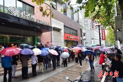长江日报-长江网10月11日讯(记者龚萍)11日上午,武汉首次发行的全国公交“一卡通”纪念卡线下售卡点正式开售,长江日报-长江网记者在位于京汉大道上的江汉路售卡点见到,市民不惧风雨,购买纪念卡的人排起长队。