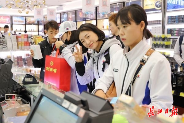 长江日报-长江网10月28日讯(记者夏奕 通讯员陈晓东)28日,参加军运会的各国运动员开始集中离开武汉,在天河机场T3航站楼免税店,记者发现有不少运动员登机前在此购物。