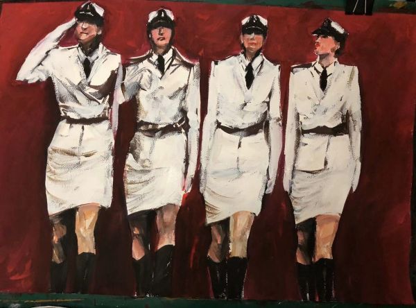 看着电视,揣摩运动细节。老吴先后绘制了20多幅表现第七届世界军人运动会精彩瞬间的速写集锦。除了传统的篮球、排球项目外,第一次画“军事五项”,老吴也完成得惟妙惟肖,把各国运动员拼搏的精彩,刻画得栩栩如生。