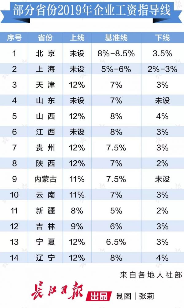 只要三条指导线——基准线、下线、上线都不是负数,就意味着政府指导的职工工资增幅都是呈上涨趋势的。