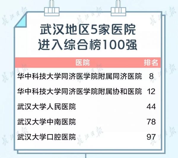 武汉这5所医院进入综合榜100强