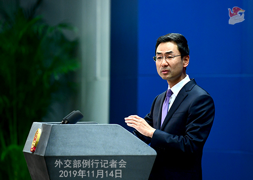 11月14日,外交部举行例行记者会,发言人耿爽主持会议并回答记者提问。
