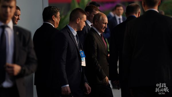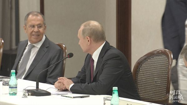 △会谈桌上的普京和拉夫罗夫。习近平对他们说:新时代要有新举措、新作为。我们双方要继续共同努力,更好造福两国人民,惠及地区及世界。(央视记者荆伟 摄)