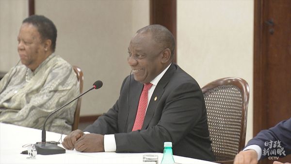 △会谈开始时的拉马福萨。习主席对他说,中南对内面临发展经济的重任,对外都坚定维护多边主义,要巩固“同志加兄弟”的特殊友谊和高度互信。(央视记者马亚阳 摄)