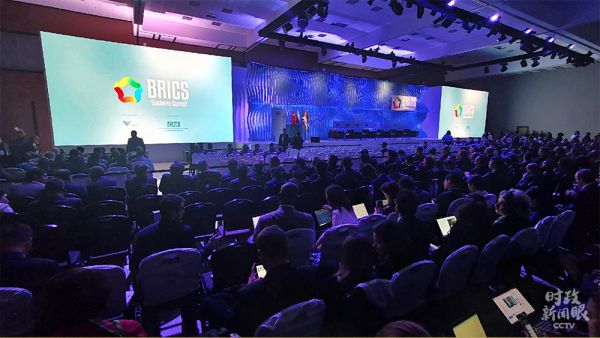 △13日傍晚,金砖国家工商论坛闭幕式会场。(央视记者张晓鹏 摄)