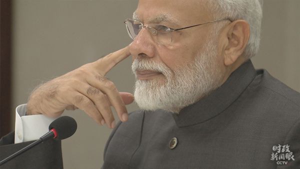 △与习主席会谈时的莫迪。习近平对他说:我同你在金奈成功举行会晤,谈得很好。我欢迎你明年到中国再次会晤。(央视记者荆伟摄)