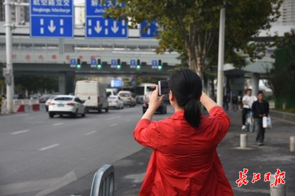 李莉正在观察武胜路、利济北路汇合路口的车流,准备再一次建言。记者杨荣峰 摄