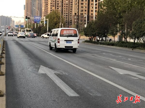 在李莉建议下,古田二路长风路路口的左转车道改为了直行车道。记者杨荣峰 摄