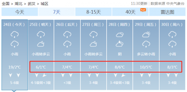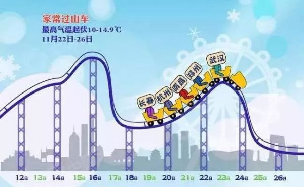 中央气象台预计,11月24日至26日,西北、华北、东北部分地区及其以南的大部地区气温普遍下降6℃~10℃,局地降温幅度可达12℃,长江中下游及以北地区先后有4到5级、阵风6到7级偏北风,江河湖面和东部沿海地区阵风风力可达7到8级。