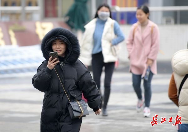 25日,武汉人穿上厚厚的冬衣,抵御寒流。记者史伟 摄