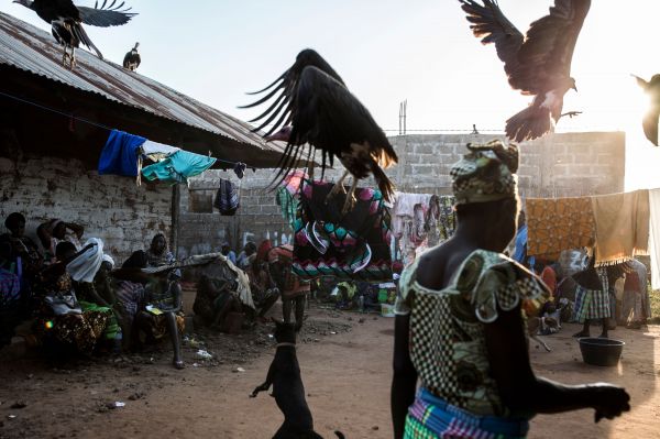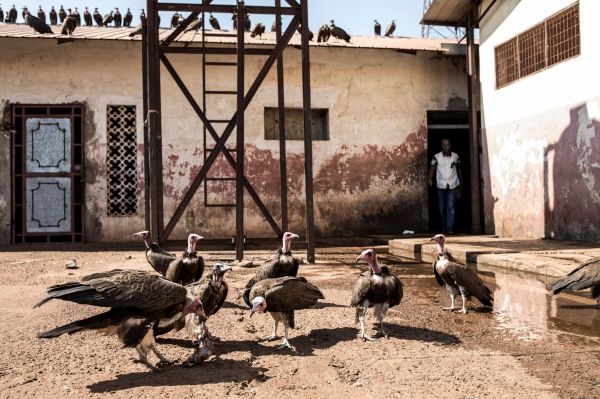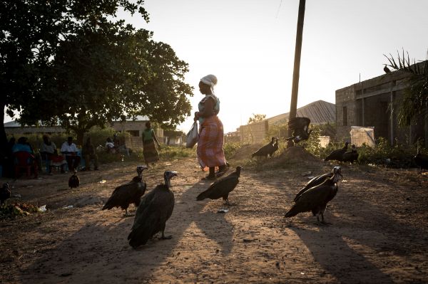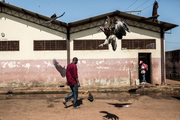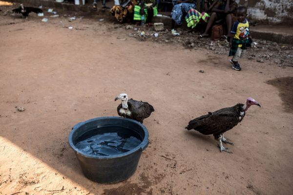 在几内亚比绍首都比绍,数万只秃鹫“融入”城市生活,在市场和垃圾堆里寻找食物。