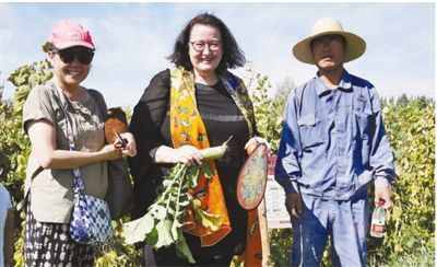 图为傅恩莱(中)在甘肃嘉峪关考察中新合作的农业项目。 资料图片