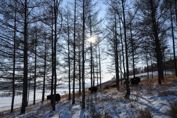 12月4日,牛群在牙克石市的一处林间休憩 新华社发