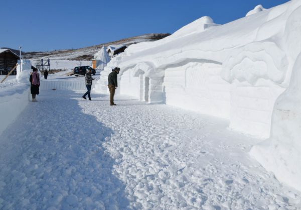 12月4日,游客在牙克石市凤凰山景区欣赏雪雕 新华社发