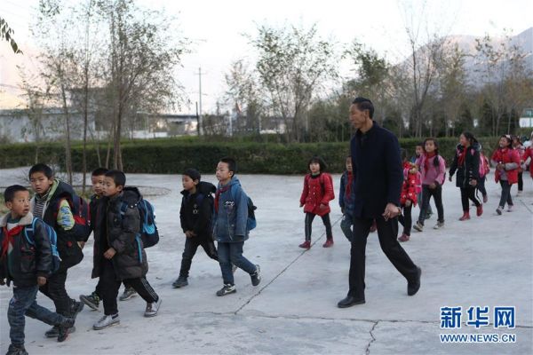 12月6日,李金海护送学生们放学。新华社记者耿馨宁摄
