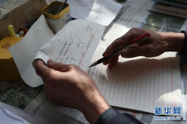 12月6日,李金海在办公室批改作业。新华社记者耿馨宁摄