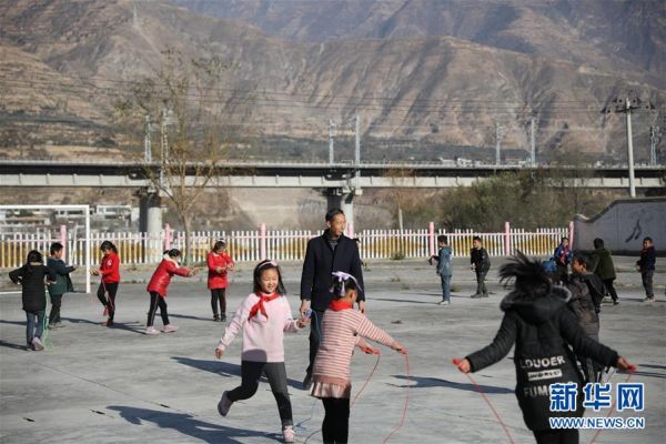 12月6日,李金海带着学生们参加课间活动。新华社发(杜哲宇 摄)