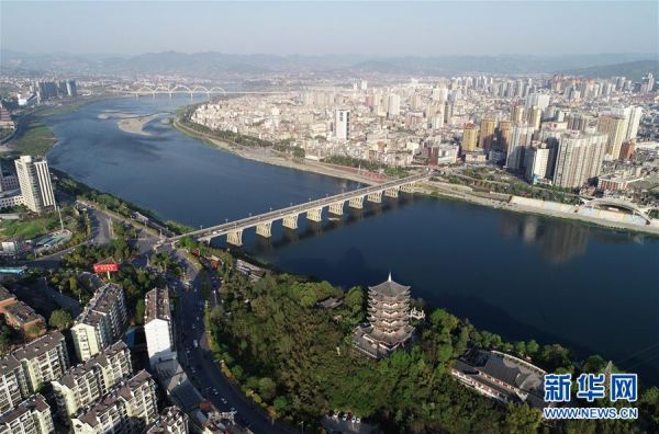 从陕西省安康市穿城而过的汉江(4月7日无人机拍摄)。新华社记者 邵瑞 摄