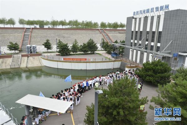 “南北一家亲 携手护水行”主题公益活动在全国中小学生研学实践教育基地、位于北京市房山区的南水北调中线干线惠南庄管理处举行。这是参加活动的学生在南水北调中线北拒马河暗渠节制闸附近参观(7月9日摄)。新华社记者 鲁鹏 摄