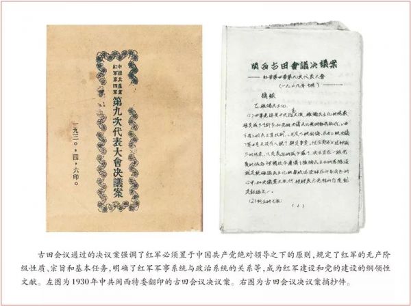 古田,是新型人民军队定型的地方。1929年12月召开的古田会议,确立思想建党、政治建军原则,实现人民军队浴火重生、凤凰涅槃。2014年10月召开的古田全军政治工作会议,确立新时代政治建军方略,引领全军重整行装再出发。两次具有里程碑意义的会议,跨越时空、承载厚重,在坚持党指挥枪这个根本问题上作出历史性贡献。90年来,党对军队的绝对领导融入我军血脉,成为须臾不可动摇的建军之本、强军之魂,确保了人民军队不断从胜利走向胜利。党的十九届四中全会从坚持和完善中国特色社会主义制度、推进国家治理体系和治理能力现代化的高度,对坚持和完善党对人民军队的绝对领导制度作出新的战略部署。面对强国强军的时代要求,我们要毫不动摇地坚持党对人民军队的绝对领导,不忘初心、牢记使命、继续前进,为实现党在新时代的强军目标、把人民军队全面建成世界一流军队而奋斗。