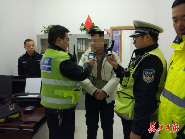 男子做呼气式酒精检测(通讯员王美慧供图)