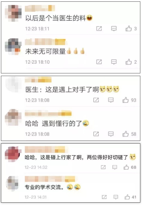 21日,青岛一位宝妈发了一段宝宝看医生的视频。视频中,医生拿着听诊器听孩子的心跳,萌娃也不甘示弱,拿着玩具听诊器不停地往医生的胸口怼。医生十分专业又耐心,萌娃也一脸的严肃认真。网友:这应该算是“学术交流”吧