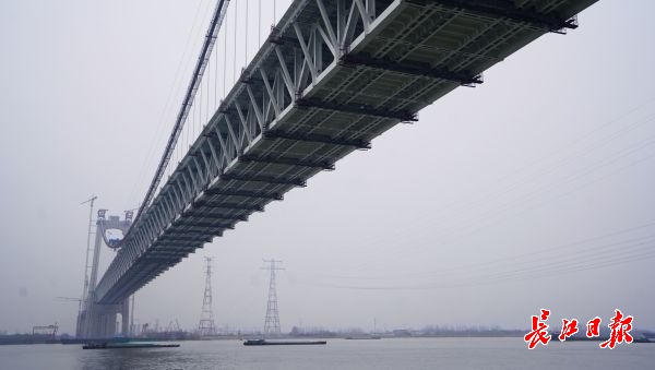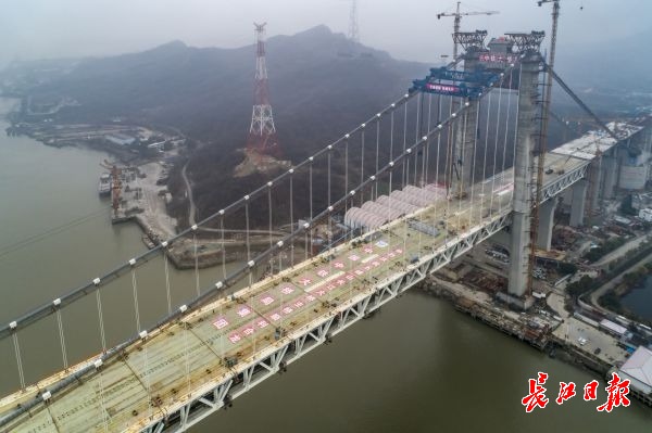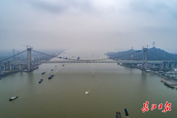 徐恭义介绍,这座桥实现钢桁梁9成全焊接,超大节段制造、安装架设,历时84天就完成了千米级跨度的架梁任务。
