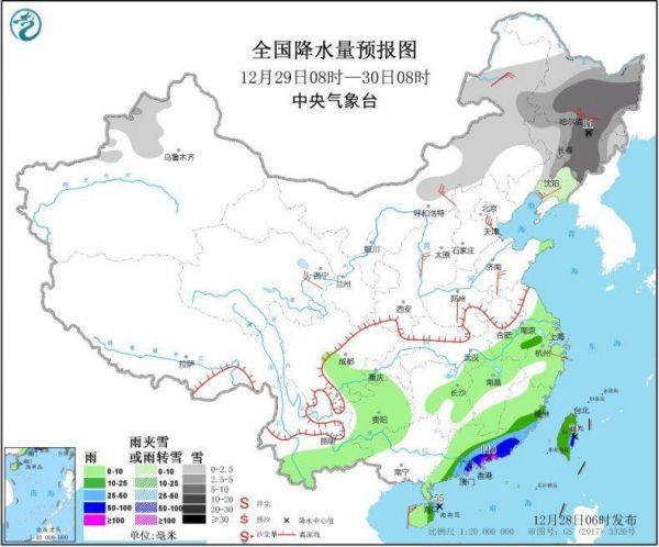 明天,北疆西部及沿天山地区、内蒙古中东部、东北地区等地部分地区有小雪或雨夹雪,其中,黑龙江大部、吉林大部及辽宁北部等地部分地区有中到大雪,黑龙江东南部、吉林东北部等地局地暴雪(10~11毫米)。福建东南部、广东中南部、台湾等地部分地区有中到大雨,其中,广东东南部、台湾东部等地部分地区有暴雨或大暴雨(100~110毫米)。
