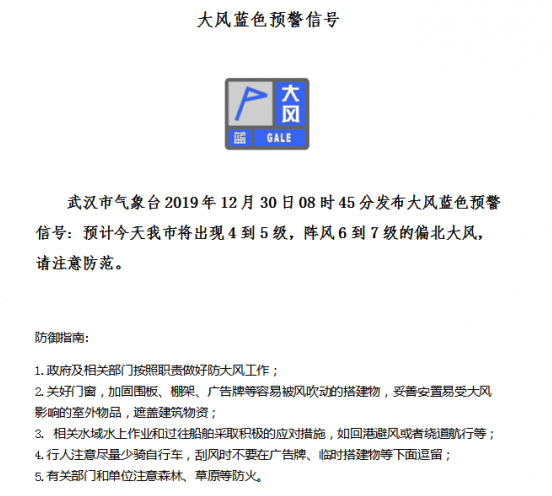 武汉人请注意了,今天有大风,请大家注意防风防寒了。